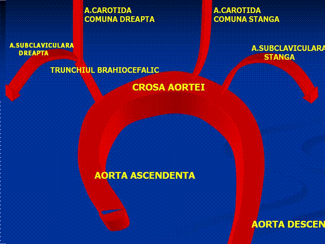 Are un traiect ascendent indreptandu-se catre gaura jugulara, unde se imparte in doua ramuri:
