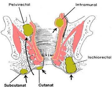 Fig. 1 - Localizarea abceselor anorectale (4)