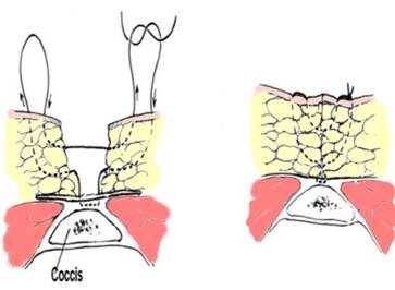 Fig. 12 - Excizia chistului pilonidal si trecerea firelor de sutura in "U" (4)