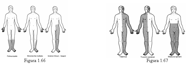 Tipul Brown-Sequard (figura 1.66) apare in sindromul de hemisectiune medulara (traumatisme cu lama de cutit,compresiuni medulare). Clinic se caracterizeaza prin:
