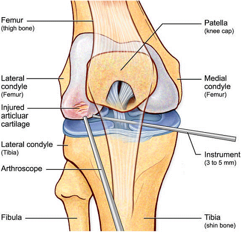 Dupa o deschidere minima a articulatiei, practicata sub anestezie locala, medicul introduce artroscopul, tubul rigid dotat cu aparatura optica si instrumentele care permit realizarea chirurgiei intraarticulare. Majoritatea componentelor articulatiei sunt accesibile sub artroscopie: un corp strain articulatiei poate fi indepartat, un cartilaj - remodelat, iar un menisc - recusut sau scos. In sfarsit, ligamentele pot face obiectul unor acte chirurgicale directe.