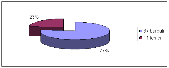 Se observa raportul crescut in spre sexul masculin, din totalul de 48 de cazuri, 37 fiind barbati.