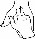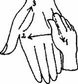 punuc si ceie patru degete, aratator, mediu,' inelar si mic eminenta tenara, hipotenara si bureletul palmar de 5 - 6 ori.