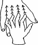 Cu mana pacientului in supinatie, facem netezirea cu pumnul (policele bine inchis in pumn), derulandu-1 de la radacina catre varful degetelor in directia de intoarcere veno-limfatica pe aponevroza palmara