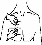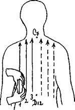 Urmeaza netezirea de intrerupere a intregii regiuni scapulare (de l - 2 ori), dupa care continuam cu tapotamentul sub forma de caus, cu partea cubitala a degetelor si cu pumnul transversal pe fibrele musculare, pe muschii bine dezvoltati cum ar fi deltoidul, muschii zonei scapulare si la barbati zona pectorala. La persoanele de sex feminin frictiunea se face doar subclavicular.
