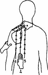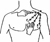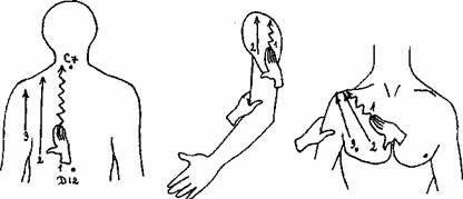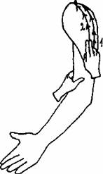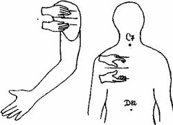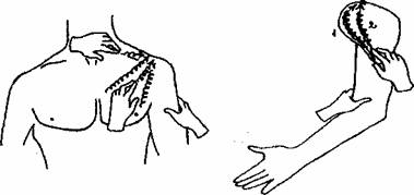 A doua directie a frictiunii este in articulatia propriu* zisa scapulo-humerala, care se face dupa ce ij prealabil am facut netezirea articulatiei propriu-zisi cu partea cubitala a degetelor (mainilor), plecand di la acromion pana la nivelul axilei, fie cu ambele main odata, fie cu o singura mana. Cand se face netezirea cu o singura mana, cealalti obligatoriu trebuie sa faca priza pe brat. Netezirea s< executa de 2 - 3 ori, ca si cum am decupa umarul dupa care continuam cu frictiunea tinand o mani contrapriza sub brat, iar cu cealalta deget peste deget pornim de la acromion cu miscari circulare, continuand apoi pe santul posterior al articulatiei p; la nivelul axilei, avand grija ca sub aceasta sa ir traumatizam pachetul vascular si nervos. Schimbam mana contrapriza si executam frictiunei pe partea anterioara a articulatiei umarului de 2 ori.
