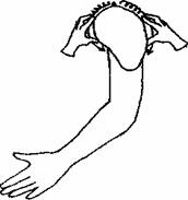 . Rotatia interna a bratului pacientul sa duca mana la spate, tinand o mana priza Pe umar, iar cu cealalta pe articulatia corului ii impingem antebratul cu o usoara vibratie pana la pragul dureros si o sa observam cum capul humeral intra in cavitatea glenoida.