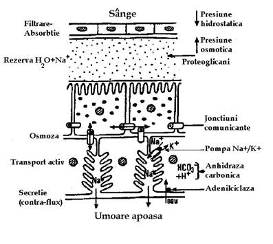 La nivelul epiteliului procesului ciliar in secretia de umoare apoasa intervine o enzima numita anhidraza carbonica, responsabila de secretia a aproximativ 1/3 din volumul umorii apoase (Fig. 13.1).