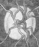 Modificarile papilare apar ca urmare a tulburarilor circulatorii de la acest nivel, consecutive cresterii presiunii oculare si a devierii fluxului sanguin ; ca urmare apare distructia fibrelor gliale de sustinere cu aparitia excavatiei (Fig. 13.6) si distructia fibrelor nervoase, cu aparitia decolorarii papilare (atrofia optica).