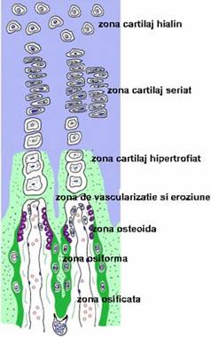 In acest tip de osificare asistam la 2 procese esentiale : remanierea si distrugerea cartilajului hialin si concomitent inlocuirea lui cu tesut osos.