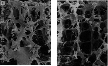 Figura 6 Structura osului spongios plat la un adult sanatos, respectiv la unul osteoporotic
