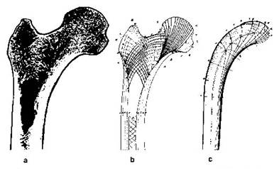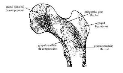 Figura 7 Reprezentarea celor cinci grupuri de trabecule din partea superioara a femurului