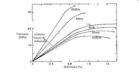 Ranirile (caderi, accidente de masina) caracteristice implica o viteza a solicitarii de 10 sec-1. La o viteza a solicitarii mai mare, oasele au o rezistenta extrem de mare, dar fracturile au loc la o solicitare mult mai mica (figura 9).