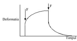 cand solicitarea se indeparteaza, deformatia initiala revine (intre limitele elastice) si deformatia vascoasa suplimentara isi va reveni treptat (figura 11).