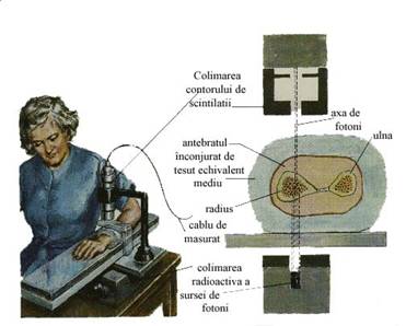 Prima metoda se face prin absorbirea de doua raze X (DEXA - Dual X-ray Absorptiometry). Aceasta metoda asigura masurarea densitatii ariei de-a lungul osului incluzand cele doua componente corticala si trabeculara (figura 19). Se poate masura pe orice locatie anatomica, dar implica anumite doze de radiatii. Se aplica, cu precadere, la riscul de fracturare al soldului si sirei spinarii. Masurarile densitatii se folosesc la estimarea modulului lui Young sau a rezistentei.