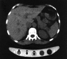 Tomografia computerizata cantitativa (QCT - Quantitative Computed Tomography) permite sectionarea osului de catre computer si selectarea regiunii ce prezinta interes (ROI's - regions of interest), in timp ce se determina densitatea (figura 20). Prevede masurarea densitatii volumetrice reale (stiindu-se aria regiunii de interes si grosimea bucatii). Se foloseste "fantoma" densitatii stiute pentru a calibra imaginea in nuante de gri. Masurile caracteristice se fac in sira spinarii sau in sold. Metoda implica o anumita doza de radiatii si se utilizeaza pentru a se distinge pacientii normali de cei osteoporotici.