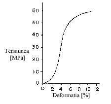 Comportamentul la tensiune - deformatie se reprezinta grafic ca o curba neliniara in figura 4.