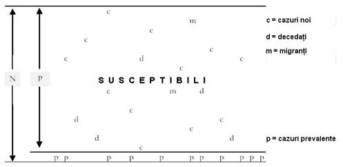 Daca N0 reprezinta subiectii fara boala la inceputul perioadei de observatie iar in timpul acesteia au fost observate "C" cazuri, "D" decese de alte cauze decat boala de interes si "W" persoane al caror status de boala este necunoscut atunci numarul subiectiilor fara boala la sfarsitul perioadei de obseervatie va fi (N0 - C - D - W). Media numarului de persoane fara boala, presupun nd ca deceela, cazurile si persiaonele cu status necunoscut apr uniform de-a lungul perioadei de observatie va fi: