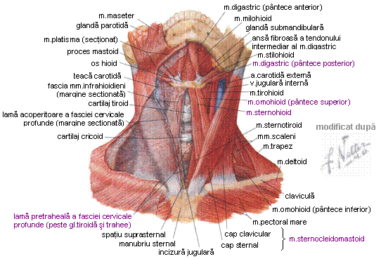 - reclinare in jos sau sectiune a istmuui tiroidian;