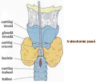 - sectionarea primelor 2 inele traheale, cu bisturiul bine fixat, al carui varf se inzroduce pe circa 3-5 mm in lumenul traheal;