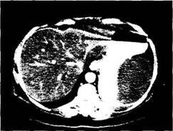 Clinic: tegumentele pot bomba, echimoza aparand tardiv de la 6-12 ore pana la 4 zile. Durerea este accentuata de palpare iar contractia musculaturii ficseaza tumefactia. Aceasta nu poate fi mobilizata in nici un sens (semnul Bouchacourt). Pentru confirmarea hematomului: punctie, echografie si, nu obligatoriu, CT (fig. 5).