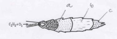 - conul urmator (de culoare verde ) este zona de combustie. Avand efect oxidant nu trebuie sa ajunga la aliaj (zona oxidanta),