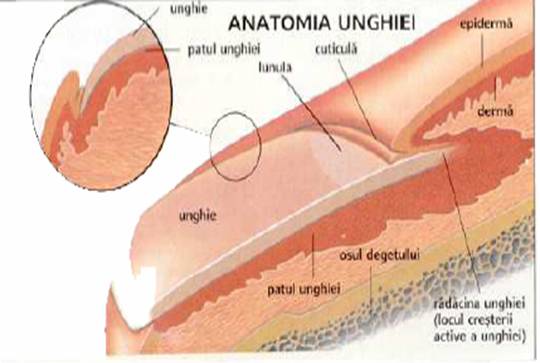 Unghia are rolul de protectie a varfului degetului .Ea e o formatiune de natura epidermica si se poate regenera prin activitatea matricei .