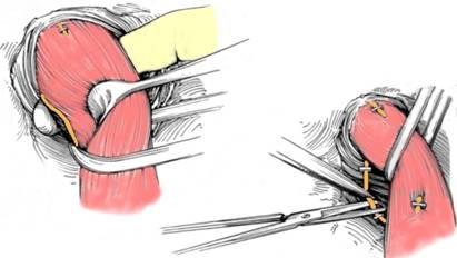 Fig. 6 - Ligatura si excizia unui fragment din vagul anterior (5)