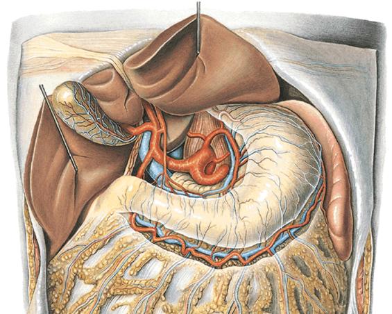 Stomacul este vascularizat de ramurile trunchiului celiac astfel: