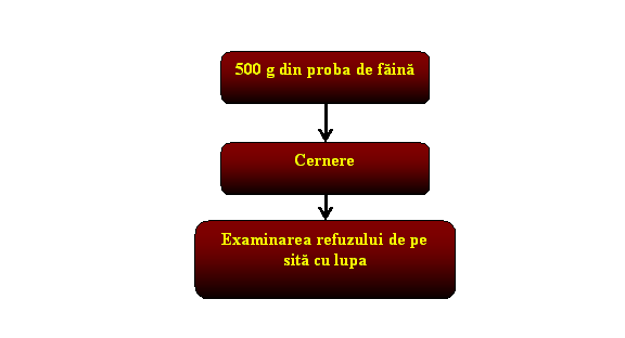 - proba de faina, lupa cu putere de marire de minimum 5 X, sita de matase sau din tesatura din fibre sintetice nr. 4 X X.