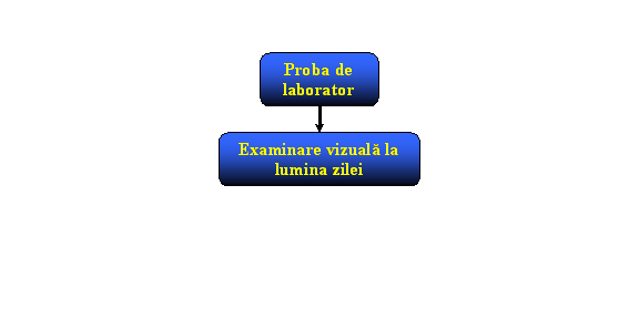Determinarea aspectului. Se face prin examinarea vizuala a probei de laborator intinsa in strat cat mai uniform pe o suprafata plana.