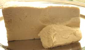 Cunoscut si sub numele de branza de soia, tofu alb este facut din lapte de soia batut, un lichid bogat in fier, extras din boabele de soia prajite si pisate. Branza rezultata se scurge si se preseaza intr-un mod similar cu branza obisnuita. Taria calupului de tofu rezultat depinde de cat de bine s-a stors zerul din el.