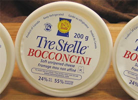 Este o branza semi-moale, de culoare alba, moale si cu un gust delicat de lapte. Este foarte buna in salatele de rosii. Se comercializeaza in roti de trei dimensiuni (regular, large si extra small).
