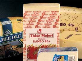 Branza daneza Tybo este facuta din lapte de vaca. Coaja ei galbena acopera un interior plin de gauri. Gustul ei delicat o face potrivita pentru sandwich-uri, salate, sosuri si multe mancaruri gatite. Unele branze Tybo sunt imbogatite cu seminte de chimen.