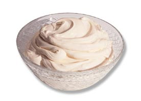 Dictionarele o traduc de obicei 'crema de branza'. Este moale, alba, cu continut mare de grasimi. Nu este acelasi lucru cu crema de branza sau branza de vaci. Unii o compara, in mod eronat, cu branza ricotta.