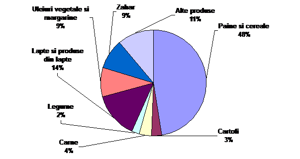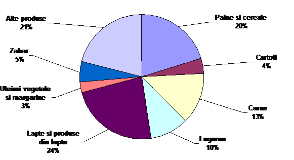 Figura 2. Compozitia dietei, in medie, in 2001 (% cheltuieli pe alimente).