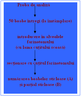 Consta in examinarea boabelor de grau sectionate (sau intregi) si determinarea sticlozitatii.