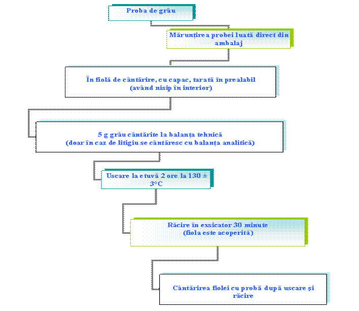 In functie de cereala analizata, difera temperatura si timpii de mentinere la uscare in etuva.