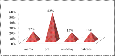Un fenomen ingrijorator il constituie faptul ca majoritatea consumatorilor (52%) aleg produsele in functie de pret, calitatea (15%), ambalajul (16%) sau marca (17%) contand mai putin. Raspunsul la intrebarea numarul 5 ne arata cat de bine educati sunt consumatorii cu privire la protectia mediului inconjurator: 68% cunosc toate cele patru simboluri ecologice; cu toate acestea, un procent de 46% consumatorii nu au intalnit pe piata produse alimentare ecologice. Din pacate, numai 20% refolosesc sacosele pe care le primesc gratuit in magazine, 57% aruncandu-le la gunoi iar 23% folosind propriile sacose textile. Majoritatea celor intervievati (56%) tin uneori cont de indicatiile privind pastrarea si depozitarea alimentelor, 36% tin intotdeauna cont de aceste indicatii iar numai 8% sustin ca nu tin niciodata cont de ele (probabil deoarece nici macar nu le citesc!).