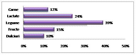 Merita semnalata si atitudinea afisata de circa 39% dintre subiecti care declara ca mai degraba ar renunta la legume decat sa renunte la alte alimente. Numai 10% ar putea renunta la dulciuri, 12% ar putea lasa deoparte carnea si 15% s-ar putea lipsi de consumul de fructe. Un important loc II este ocupat de produsele lactate, 24% dintre cei intervievati putand elimina din alimentatia lor produsele de acest gen.