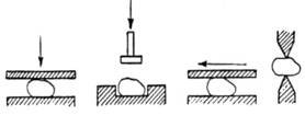 a b c d Metode de maruntire: a - prin comprimare; b - prin lovire; c - prin frecare; d - prin taiere |