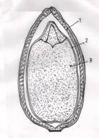 1-coaja; 2- tegument; 3- miez.