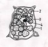 1-membrana; 2- granule aleuronice; 3- oleoplasma; 4- nucleul.