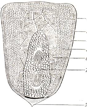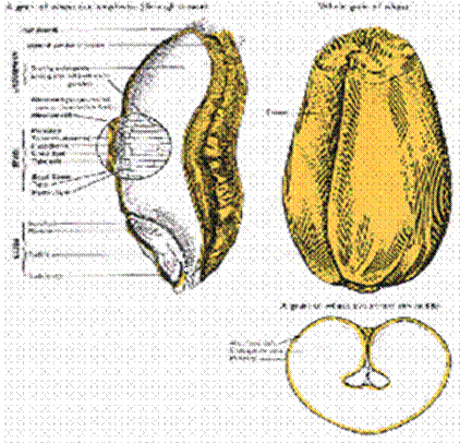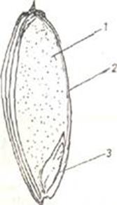 1 - endosperm 2 - invelis 3 - germene