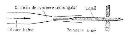 Lama ascutita este pozitionata in fata duzei cu sectiune rectangulara. Lichidul se pompeaza prin duza si pune lama in stare de vibratie, undele ultrasonore fiind conduse in lichidul din apropierea lamei vibratoare, unde se produc cavitati si deci emulsionare. Diametrul particulelor dispersate este de 1-2μ.