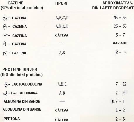 In tabelul de mai jos sunt prezentate principalele proteine din lapte.