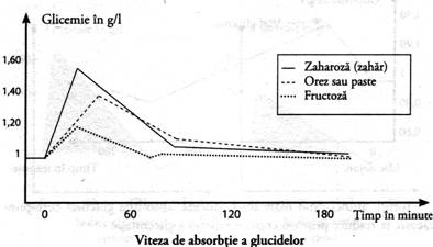 Se constata acum ca varful glicemic al tuturor glucidelor (adica absorbtia lor maxima), ingerate separat, pe stomacul gol, survine in acelasi interval de timp (circa o jumatate de ora de la ingerare).