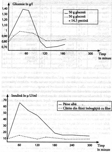 Cu toate ca ele nu au apriori nici o valoare energetica, fibrele alimentare joaca un rol extrem de important in digestie. Ele reduc absorbtia glucidelor, facand astfel sa scada glicemia.