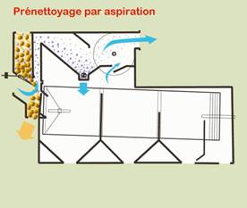 * desprinderea si indepartarea impuritatilor aderente pe suprafata boabelor (praf mineral, microorganisme, malura)