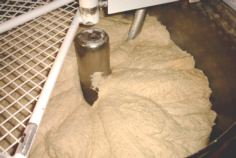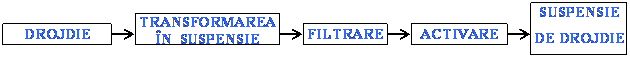 Pentru a asigura o repartizare uniforma in intreaga masa a semifabricatelor, pentru initierea si realizarea unei fermentatii omogene, este necesar ca inainte de introducerea in fabricatie a drojdiei sa fie trecuta sub forma de suspensie, care se realizeaza prin amestecarea drojdiei si a apei calde la temperatura de 30-35oC in proportii ce variaza de la 1/10 la 1/2, solutia optima fiind de 1/5, respectiv 1 kg drojdie la 5 l apa.